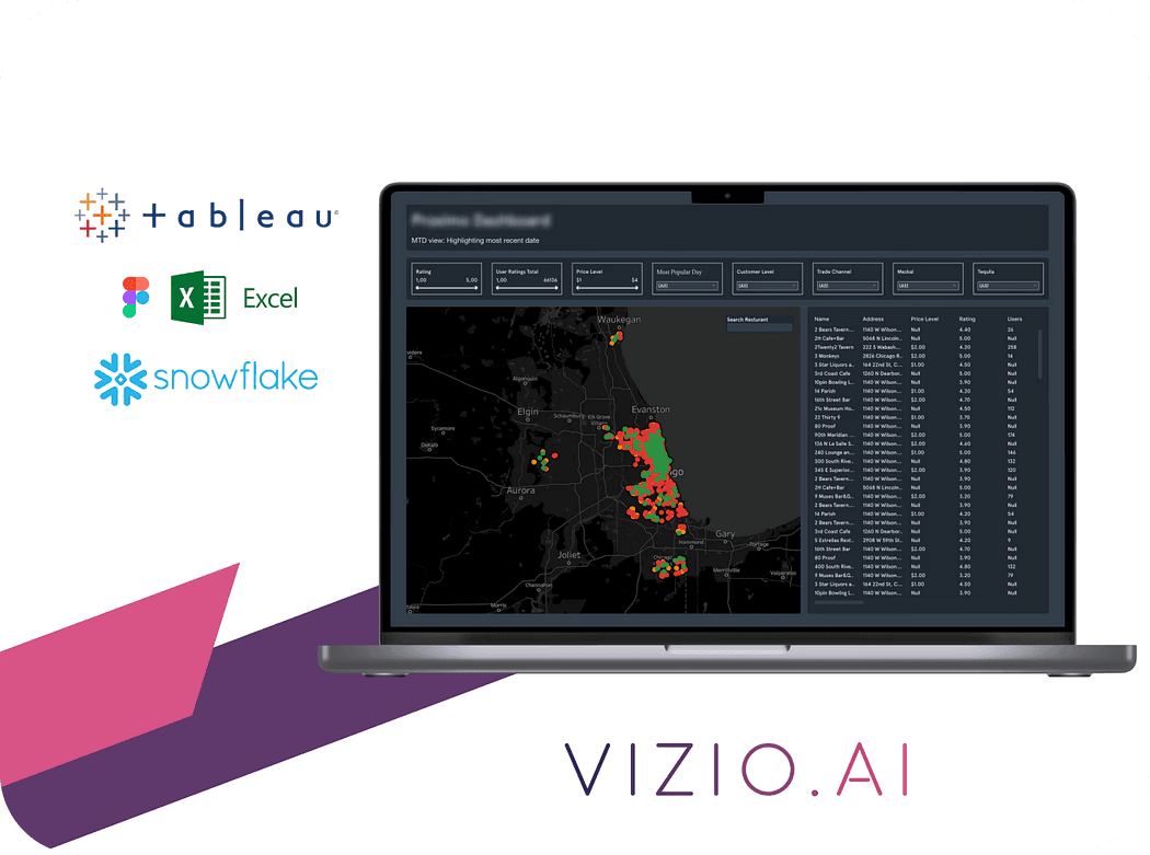 With a solid understanding of the problem, we created a solution focused on data integration and real-time insights. We integrated Proximo’s internal CRM data with external market data (such as Google restaurant data), allowing us to generate prioritized customer profiles and focus on high-value leads. We also built a Tableau-powered dashboard that streamlined access to customer insights and incorporated Snowflake and AI-driven recommendations to provide real-time guidance for sales reps, ensuring they focused on the right leads at the right time.