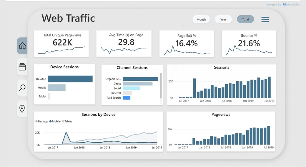 Visual Representations: Configurable with diverse visualizations, from basic charts like line and bar graphs to more intricate displays such as scatter plots or heat maps, dashboards exhibit multiple performance metrics and statistics.