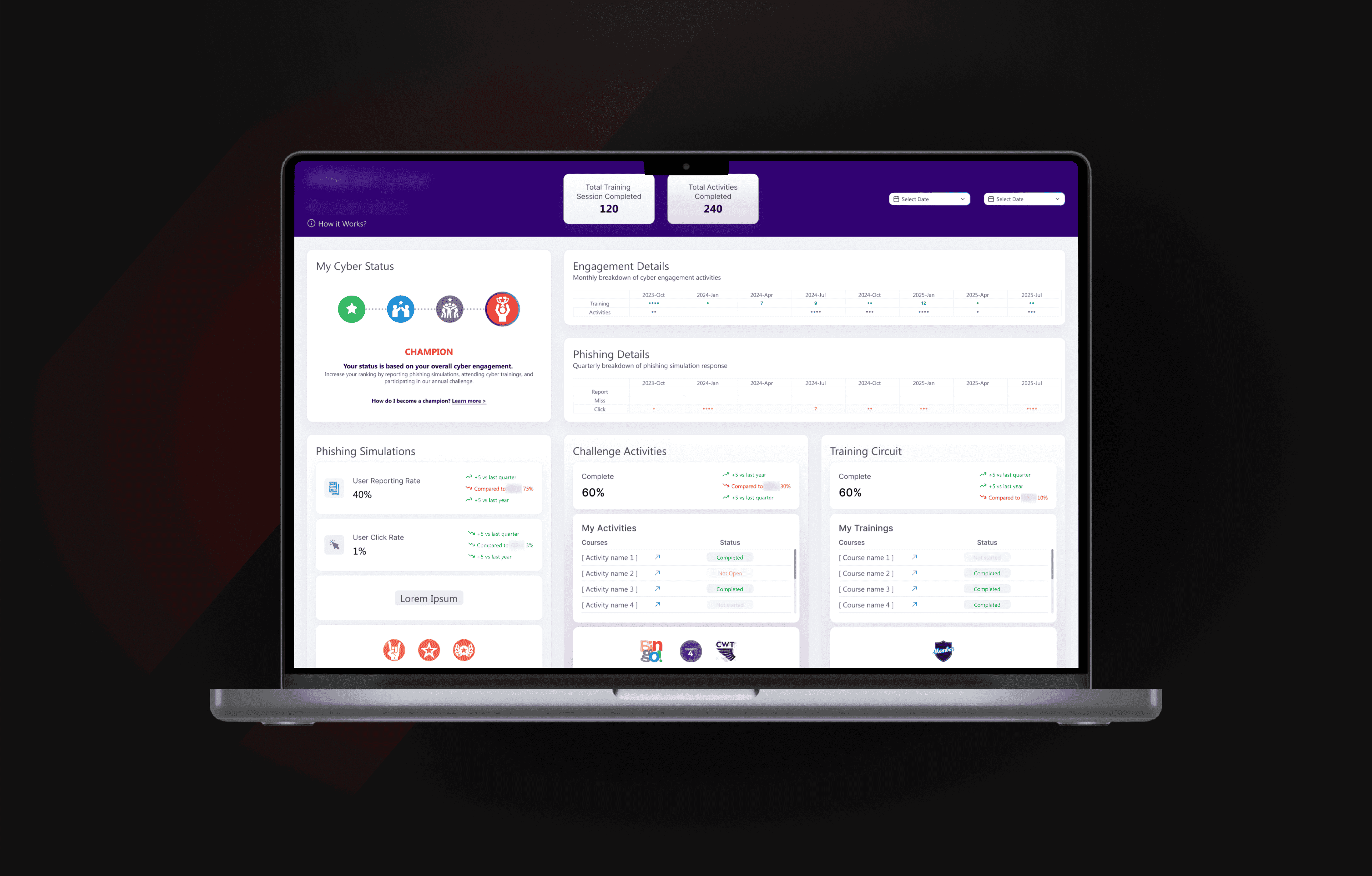 The Cybersecurity Awareness team is responsible for enhancing employee resilience against phishing and social engineering attacks. To improve engagement and training outcomes, the company sought a unified, data-driven solution capable of visualizing awareness metrics, identifying high-risk groups, and accelerating response to security behavior patterns.