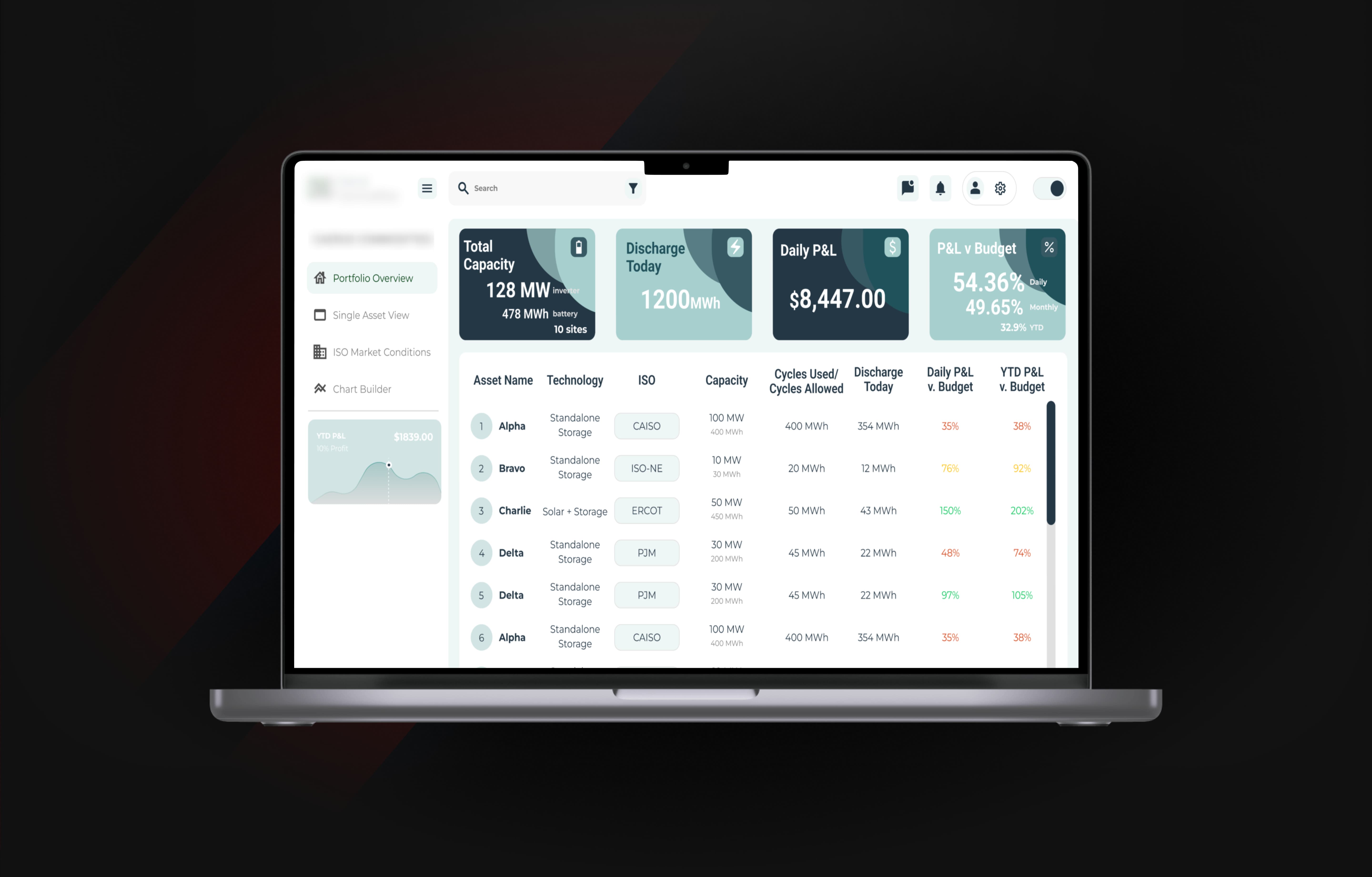 Built a browser-based interface with real-time streaming widgets for battery asset KPIs: market price, state of charge, dispatch schedules, and weather data—all auto-refreshing and fully interactive.